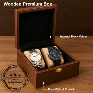 Premium Dark Walnut Wooden Box with Hinge Cover and Lock Gift Display