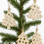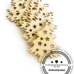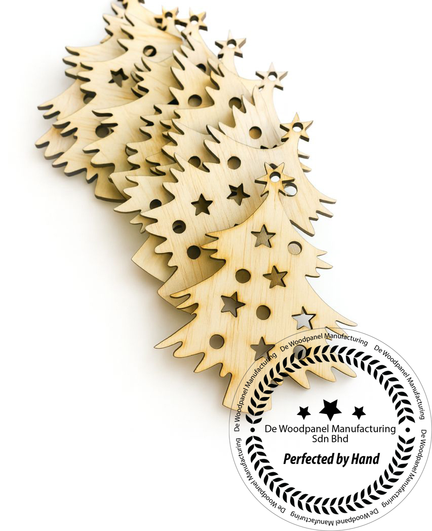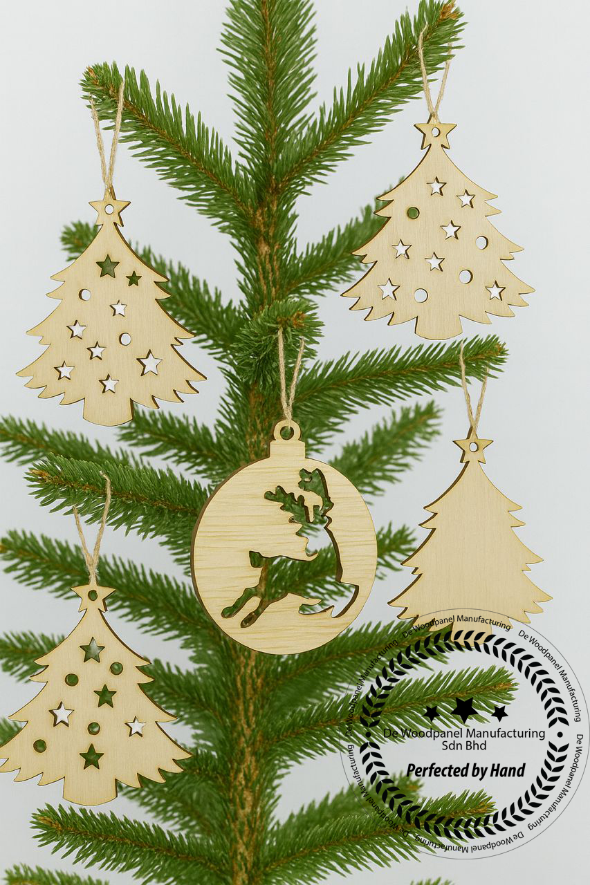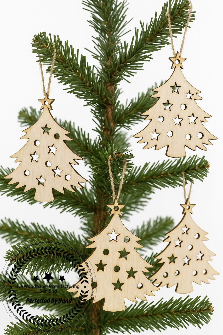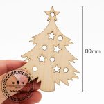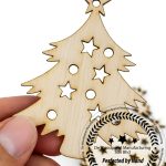 These are laser-cut wooden Christmas ornaments made from light-colored natural wood. Each shape features precisely cut star and round holes for a decorative, festive look. The edges have a slightly darker burn finish, adding a rustic handcrafted charm. A small hole at the top allows for easy hanging on Christmas trees, gift wrapping, garlands, or crafts. — ideal for DIY decoration, painting, or engraving.