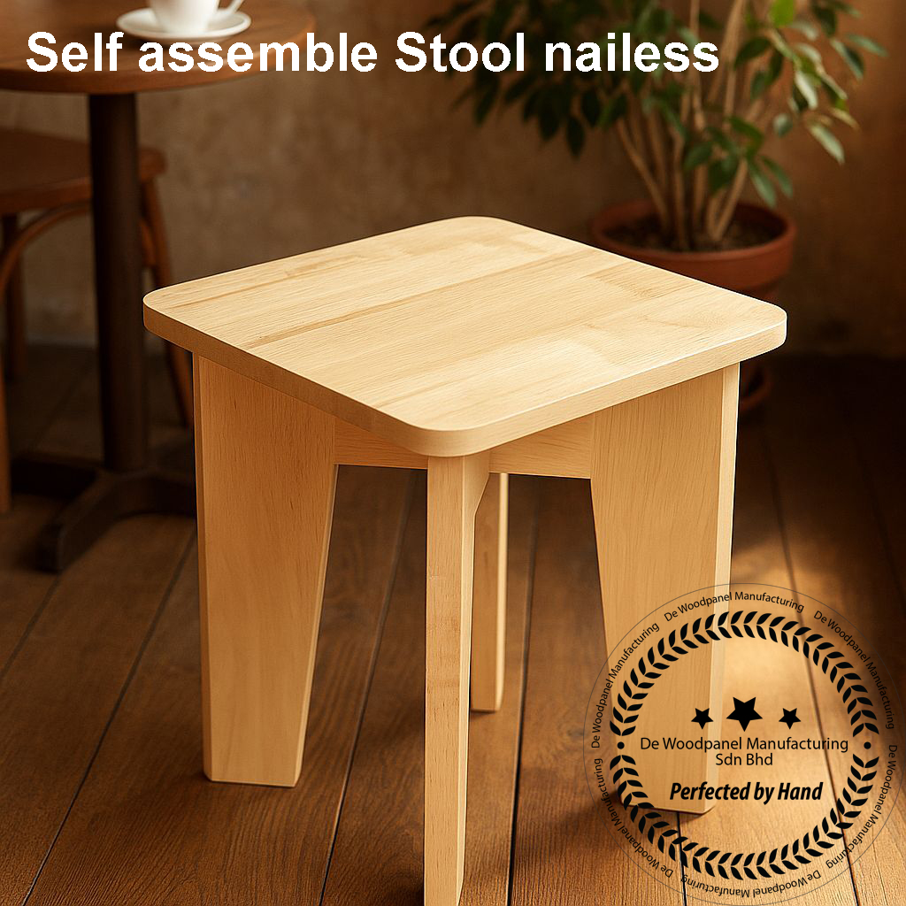 This wooden stool features a simple, clean, and modern design made entirely from light-colored natural wood. It has a square top with gently rounded corners, giving it a soft and inviting look. The surface shows subtle grain patterns, enhancing its handcrafted and organic appeal.